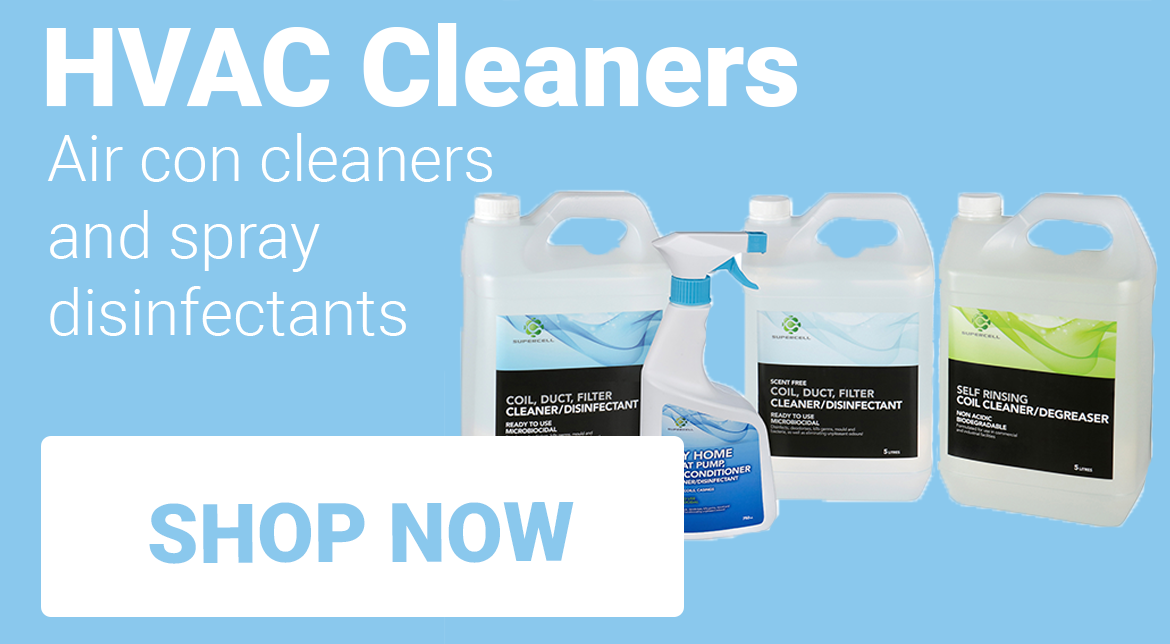 Supercell formulated commercial cleaners & disinfectants for air conditioning and refrigerant plant.