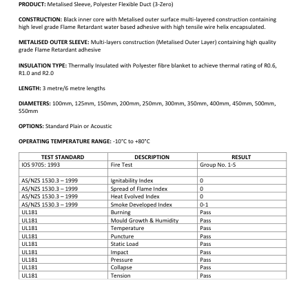 All ducting meets AS 4254 Standard and AS 1530 Part 3 Fire Test