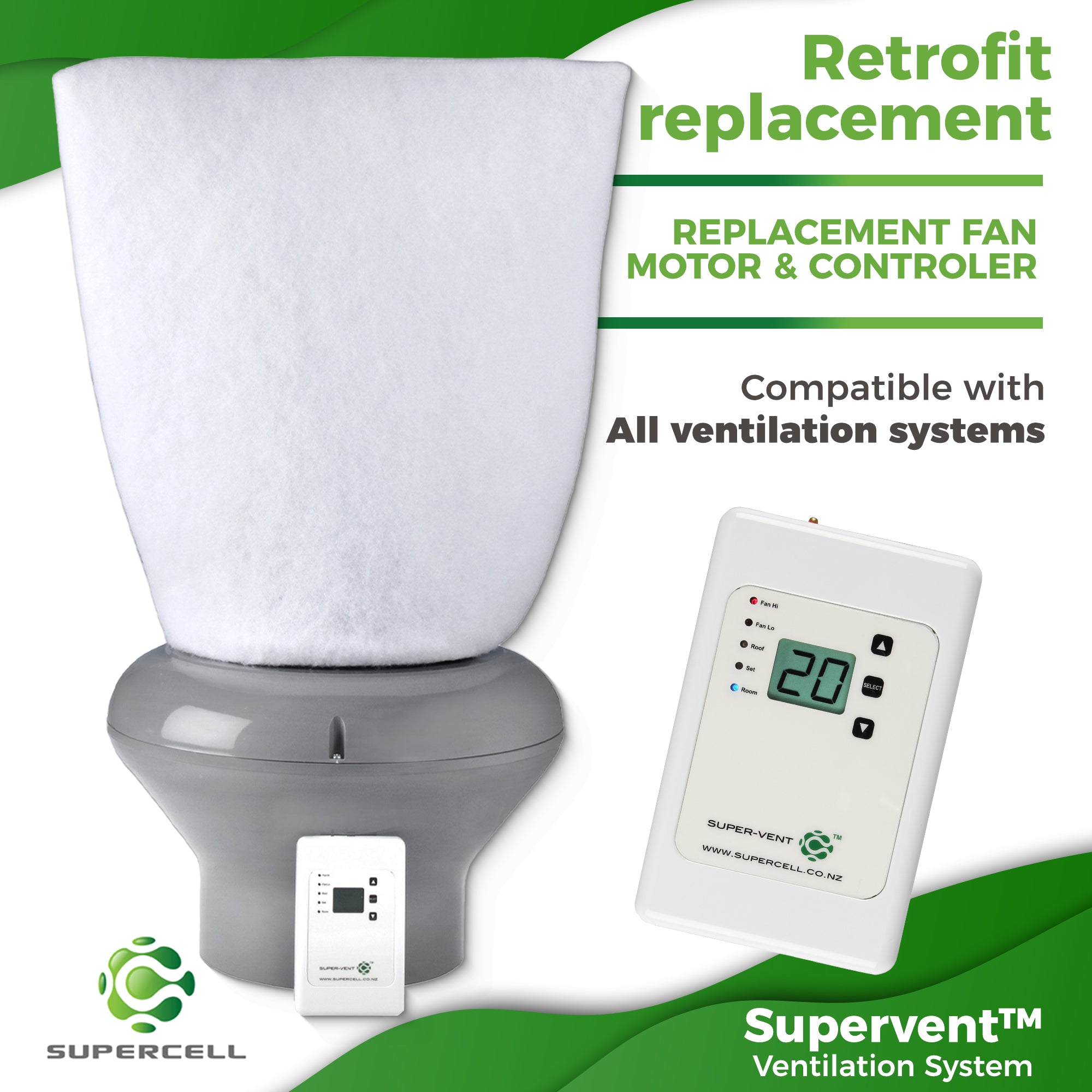 Supervent™ Ventilation System: 200mm Retrofit Replacement Fan Motor & Controler